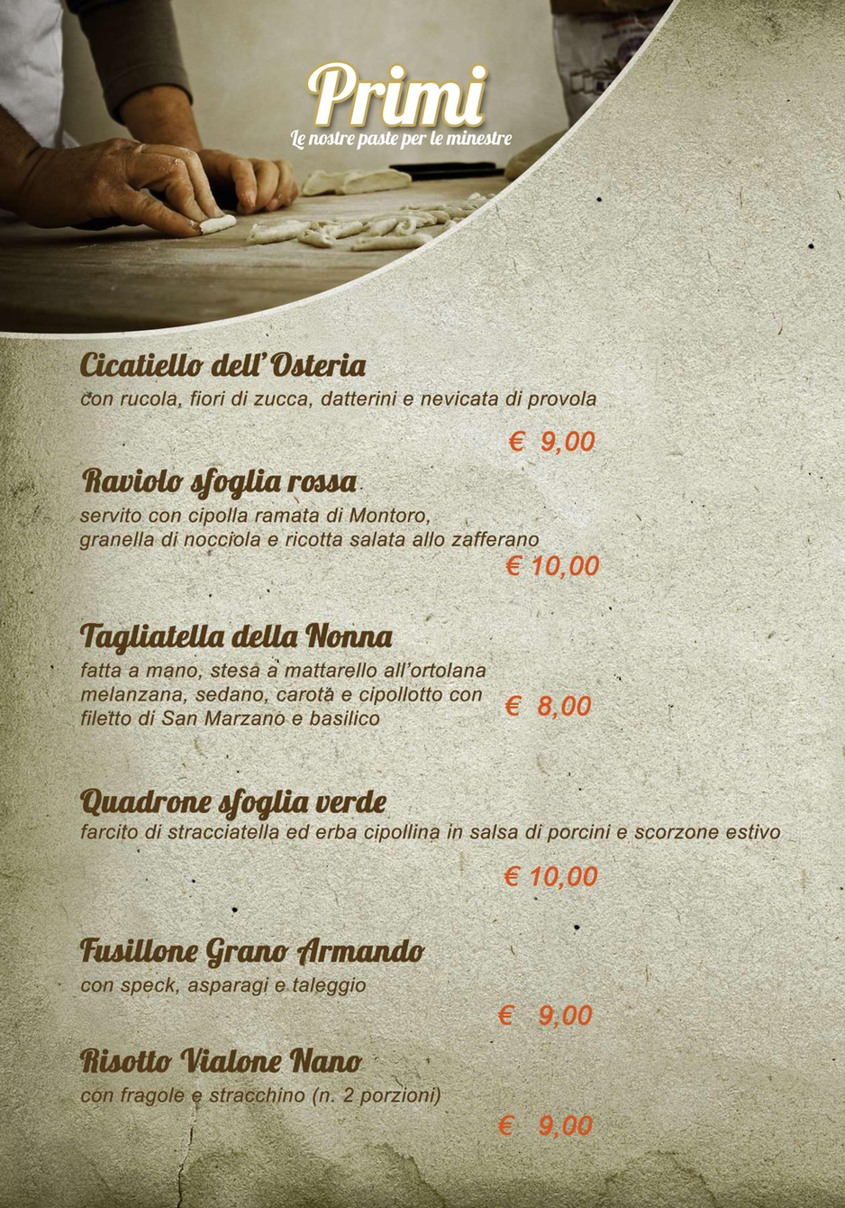 questo è il menu che troverete sempre disponibile in Osteria, arricchito giornalmente da prodotti del periodo.